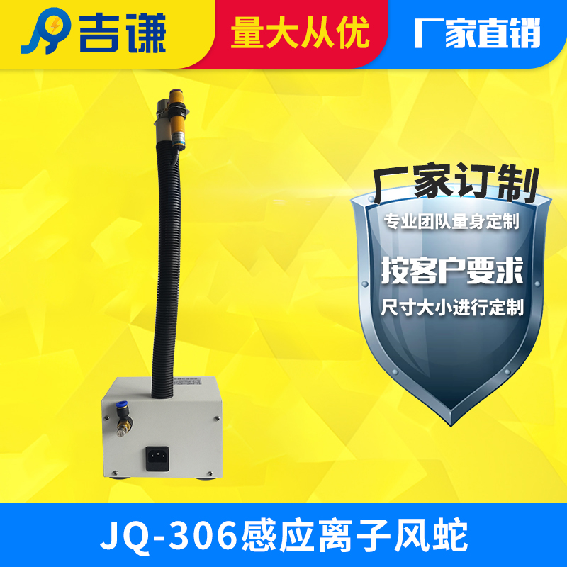 JQ-306連體感應式離子風蛇可產生大量的帶有正負電荷的氣流,被壓...